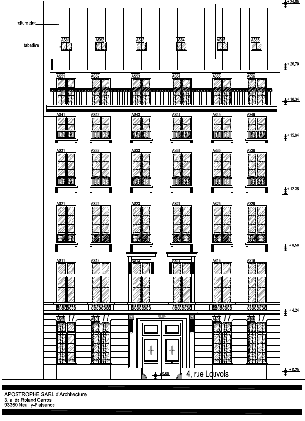 Livraison 2015 I Habitat I Coût : 0,5 M€ I Maître d’ouvrage : R.I.V.P. Travaux de remplacement et de restauration des menuiseries extérieures d'un corps de bâtiments Classé Monument Historique à Paris (75).